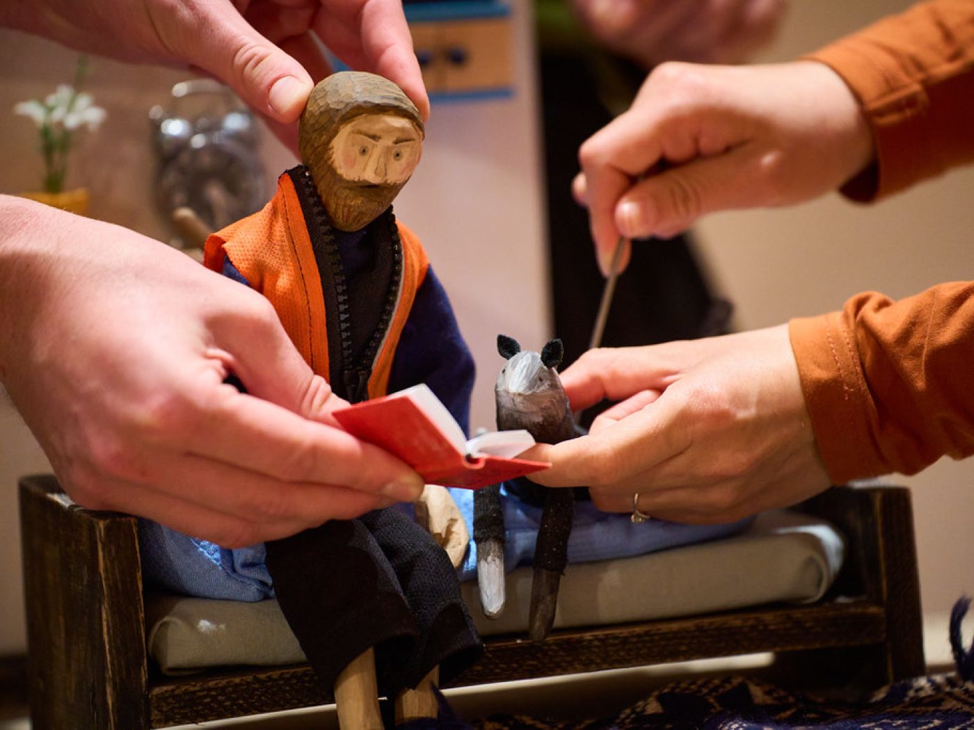 Pod vedením scénografky Anny Hubené se naučíte, jak si vyrobit vlastní dřevěnou loutku inspirovanou představením Kam s tebou?